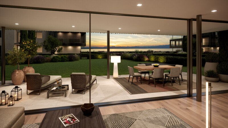 Die großzügigen Wohnungen verfügen entweder über große Privatgärten oder über großzügige Terrassen. Alle Wohneinheiten bieten einen Blick auf den See.