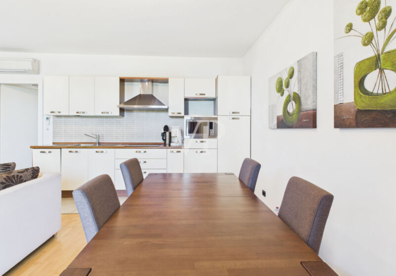 Aufteilung: klimatisiertes Durchgangszimmer, zwei Doppelschlafzimmer, zwei Bäder mit Dusche/WC.