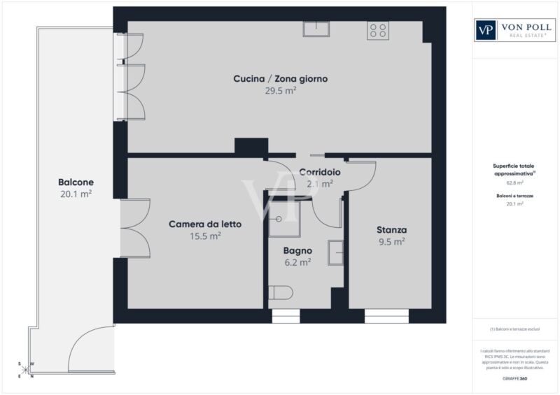 Der Eingang öffnet sich auf das Wohnzimmer und die voll ausgestattete Küche. Der Schlafbereich besteht aus einem Doppelzimmer mit direktem Zugang zu einer großen Terrasse von ca. 30 m², ideal zum Entspannen im Freien, einem Einzelzimmer und einem modernen Bad mit Dusche.
