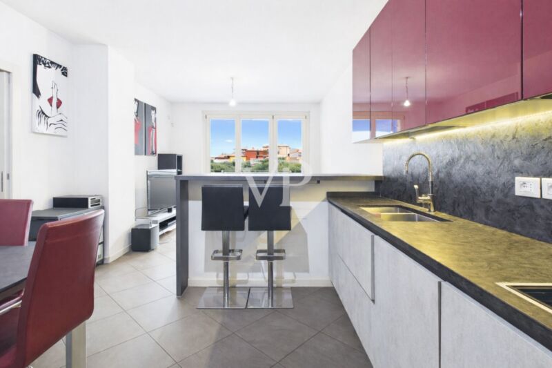 Die Wohnung ist mit hochwertigen Materialien ausgestattet und verfügt über modernste Technologie für maximale Energieeinsparung und Sicherheit: Wärmepumpen-Klimaanlage, Solar- und Photovoltaik-Paneele, Hausautomatisierungssystem, Alarmanlage und Safe. Die Immobilie wird durch eine praktische Garage im Untergeschoss ergänzt.