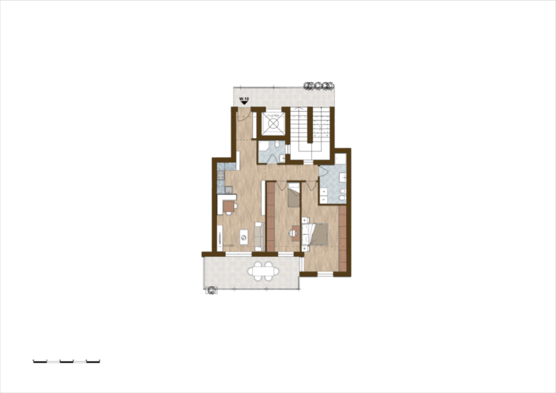 Bei der Wohnung 10 handelt es sich um eine 3- Zimmerwohnung im zweiten Stock bestehend aus: Eingang, Wohnzimmer mit Küche, 2 Schlafzimmer, 2 Badezimmer, Terrasse und Keller. Gegen Aufpreis kann die Immobilien von der Bindung "Wohnung für Ansässige" freigestellt werden.