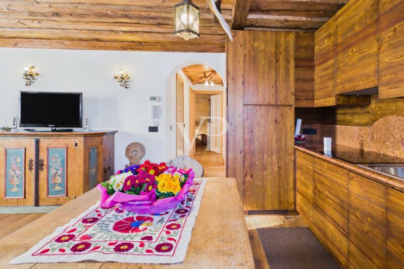 Sie befindet sich im ersten Stock eines gepflegten Wohnhauses und zeichnet sich durch die große Helligkeit der Räume und ihre privilegierte Lage aus, die einen spektakulären Blick auf die umliegende Alpenlandschaft bietet. Die Wohnung wurde mit viel Liebe zum Detail renoviert und mit eleganten, maßgefertigten Möbeln aus natürlichen Materialien und hochwertigen Hölzern ausgestattet, die den Räumen eine warme und raffinierte Atmosphäre verleihen.