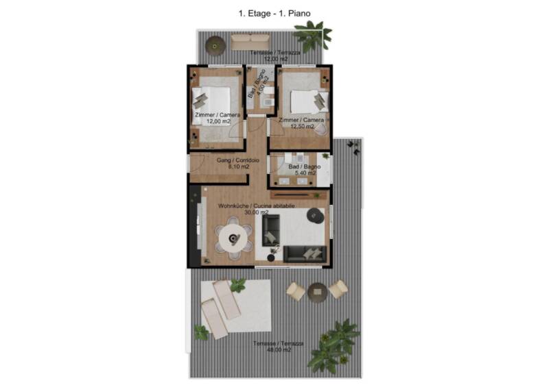 Wir bemühen uns, auf dieser Website richtige und vollständige Informationen zur Verfügung zu stellen. Wir übernehmen jedoch keine Haftung oder Garantie für die Aktualität, Richtigkeit und Vollständigkeit der bereitgestellten Informationen und Bildmaterial. Zweidimensionale Grundrisse und dreidimensionale Renderings sind größtenteils figurativ und nicht immer maßstabsgetreu bzw. entsprechen nicht immer der Realität. Wir behalten uns das Recht vor, ohne vorherige Ankündigung Änderungen oder Ergänzungen der bereitgestellten Informationen vorzunehmen.