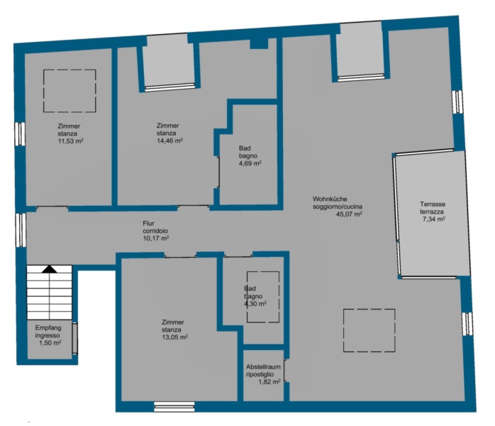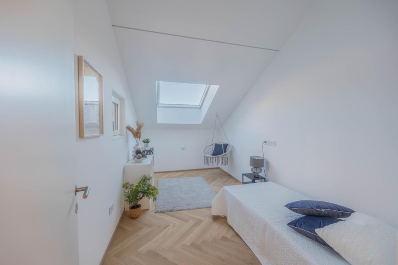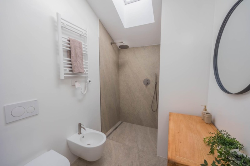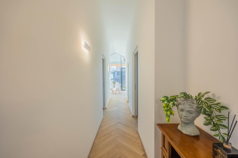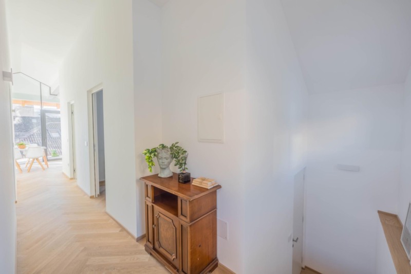 In absoluter Bestlage im Zentrum von Kaltern präsentiert sich diese exklusive Penthousewohnung, die die gesamte oberste Etage eines stilvoll sanierten Gebäudes einnimmt. Bereits beim Betreten wird klar, dass hier besonderes Augenmerk auf jedes Detail gelegt wurde: Edles Fischgrätparkett, großflächige Fliesen und perfekt abgestimmte Materialien schaffen eine außergewöhnlich elegante Atmosphäre. Die Etage wurde vollständig neu errichtet – inklusive Decken, Wänden und Dach – und erfüllt höchste Ansprüche an moderner, hochwertiger Wohnqualität.