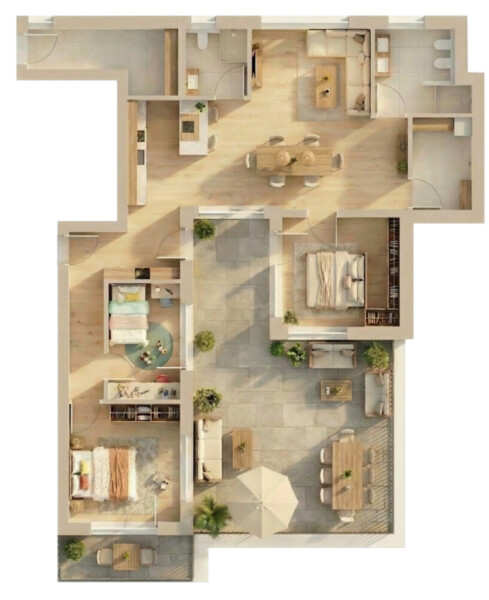 Abgerundet wird die Wohnung durch zwei großzügige Terrassen mit einer Gesamtfläche von knapp 60 m², auf denen auch eine teilweise Begrünung möglich ist.