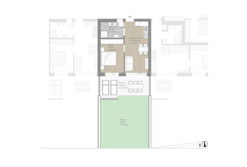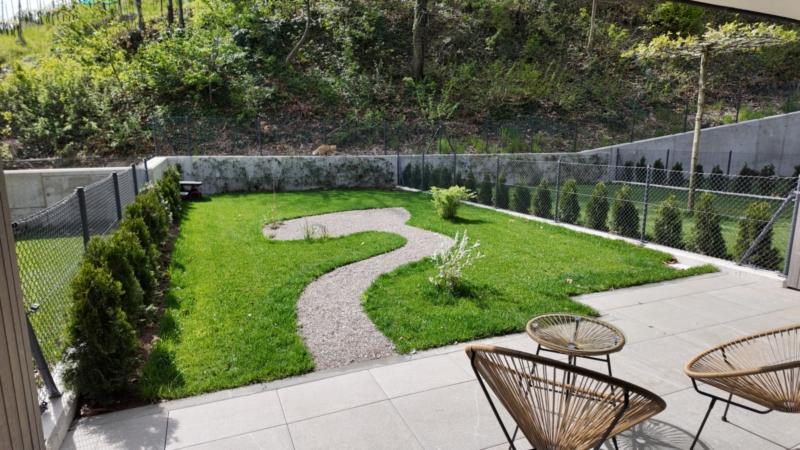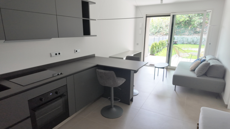 In Kaltern wird eine moderne, hochwertig ausgestattete Zweizimmerwohnung in einem Neubau zur Miete angeboten. Die Wohnung besteht aus einem hellen Wohnbereich, einem Schlafzimmer und einem Badezimmer sowie einem großzügigen Garten. Die Immobilie ist ein Erstbezug, vollständig mit neuen Möbeln eingerichtet und zudem sehr stilvoll gestaltet. Zur Immobilie gehören außerdem ein Stellplatz in der Garage sowie ein Keller.