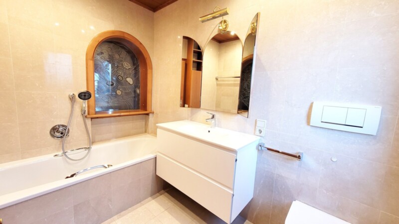 Die Wohnung verfügt über einen großzügigen Keller, Garage und zwei Autoabstellplätze im Freien, aber keinen Aufzug.