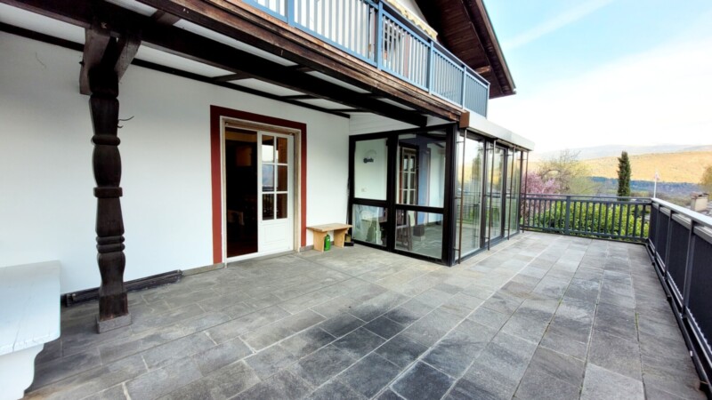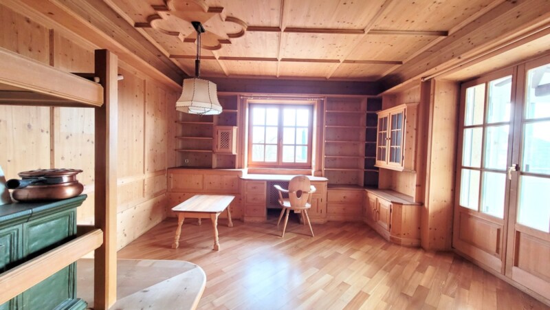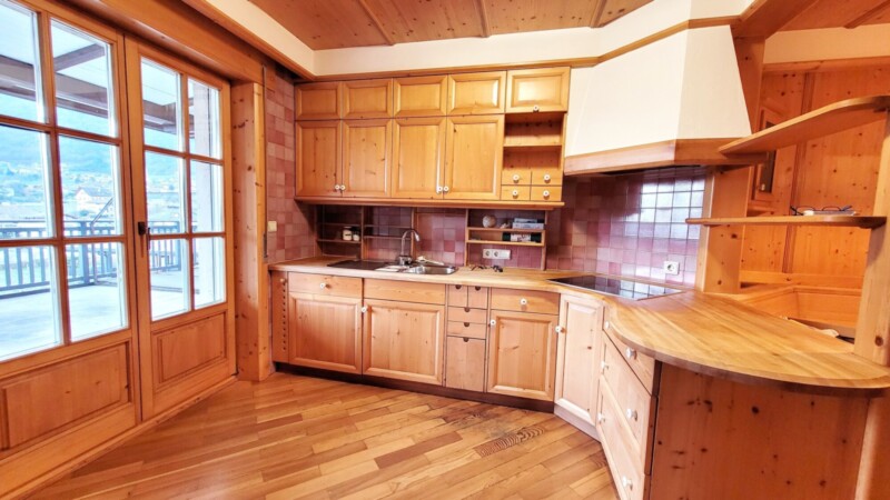 Gepflegte Drei-Zimmer-Wohnung mit einzigartiger Aussicht auf Dorf und See im ersten Obergeschoss.