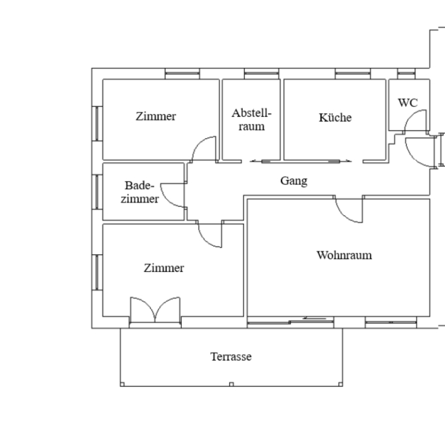 Die Wohnung befindet sich im Dachgeschoss eines Mehrfamilienhauses und ist wie folgt eingeteilt:
