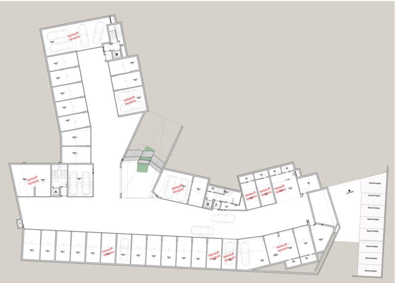 Optional können Garagenstellplätze im Untergeschoss separat erworben werden (Garagenbox: 35.000,00 Euro; Doppelgaragenbox: 58.000,00 Euro).