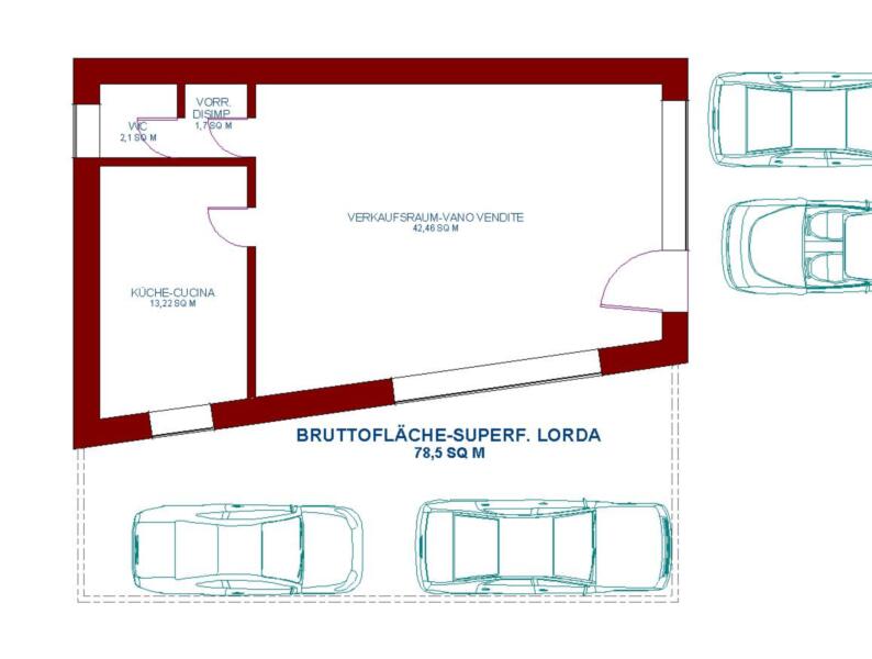 Das Geschäft ist Teil eines kleinen Wohnhauses, wodurch keine zusätzlichen Kondominialkosten anfallen. Es verfügt über ein Badezimmer sowie einen Nebenraum, der auch als kleine Küche oder Lager genutzt werden kann.