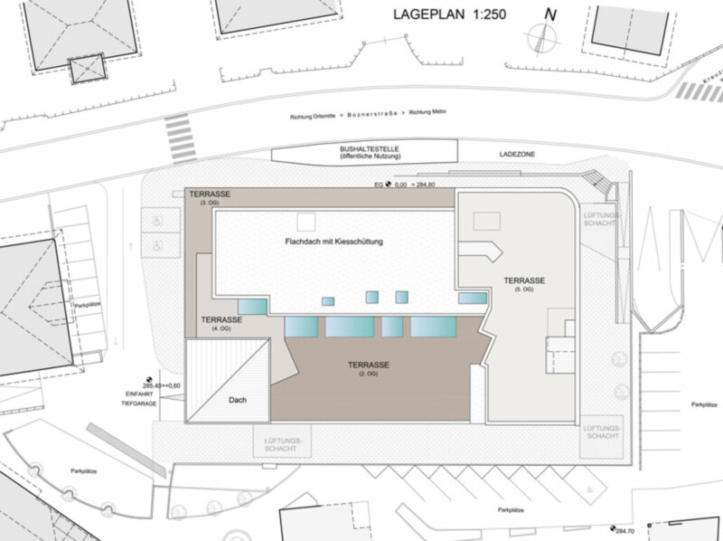 Diese exklusiven Wohnungen, Gastronomie- und Geschäftslokale, Büros sowie Arztpraxen werden nach „KlimaHaus A“ Standard errichtet und zertifiziert. In den drei Untergeschoßen des Gebäudes sind Garagen, Lager und Kellerräume vorgesehen.