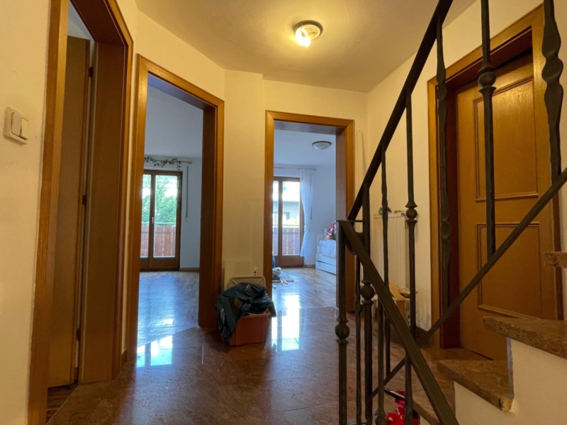 In Lana, unweit des bekannten Tribusplatz, vermieten wir eine Haushälfte mit Keller und großer Garage, verteilt auf 3 Stockwerke (1. UG, EG, 1. OG).