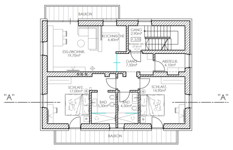 Zudem verfügt die Wohnung über einen hellen Hauswirtschaftsraum mit Waschmaschinenanschluss und großzügigem Stauraum.