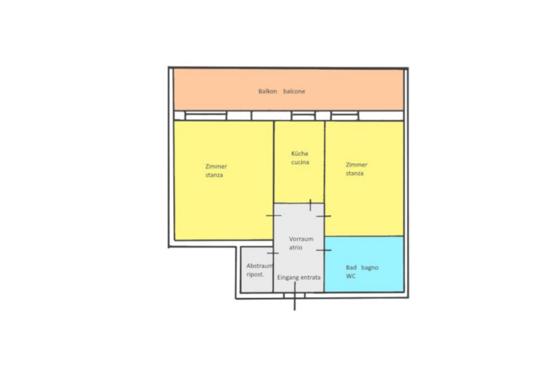 Lana - ZweiZimmerWohnung samt Keller und überdachten Stellplatz zu verkaufen. Besteht aus Vorraum, Abstellraum, Küche, Bad-WC, 2 Zimmer, Balkon im 1. Stock. Westausrichtung. Zentrale Lage. Sanierungsbedürftig. Keine Bindung! Anfrage über info@immobilienpobitzer.com oder 0473/233 257