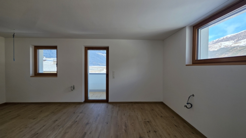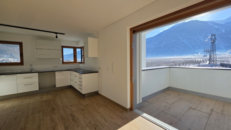 Der weitläufige Wohnraum bildet das Herzstück der Wohnung. Große Glasfronten öffnen den Raum zur sonnigen Terrasse und schaffen eine fließende Verbindung zwischen Innen und Außen. Die Südausrichtung garantiert ganztägig helle, freundliche Wohnatmosphäre und ein einzigartiges Raumgefühl.
