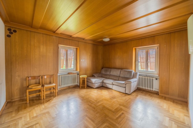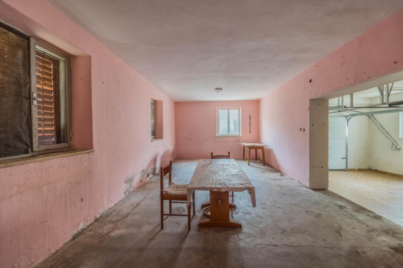 Im Untergeschoss befinden sich zwei geräumige Kellerräume, die sich ideal für Lagerzwecke, eine kleine Werkstatt oder als Weinkeller eignen. Das Erdgeschoss beherbergt eine Garage, ein Badezimmer sowie einen Hobbyraum, der sich flexibel nutzen lässt – etwa als Fitnessbereich, Atelier oder zusätzlicher Wohnraum.