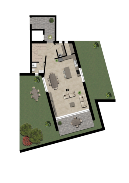 Der private Garten bildet eine natürliche Erweiterung des Wohnraums und bietet vielfältige Möglichkeiten für Erholung, Rückzug und Leben im Freien.