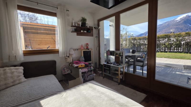 Der durchdachte Grundriss bietet zwei Schlafzimmer, ein geräumiges Badezimmer sowie einen großzügigen Wohnbereich mit integrierter Küche. Die südseitige Ausrichtung des Wohnraums eröffnet eine beeindruckende Aussicht und schafft eine harmonische Verbindung zwischen Innen und Außen.