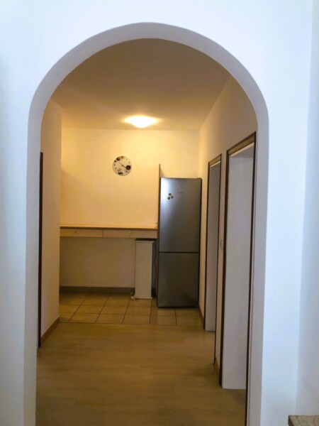 Zweizimmerwohnung in Marling in einem kleinen Wohnhaus im Erdgeschoss, bestehend aus: Flur, Wohnzimmer, Schlafzimmer, kleine separate Küche, Bad mit Fenster (Dusche-WC). Dem Mieter ist die Nutzung des gemeinschaftlichen Vorgartens gestattet. Außerdem ist im monatlichen Mietpreis ein privater Autoabstellplatz enthalten. Die Wohnung ist komplett möbliert. Betriebskosten: € 150/Monat.