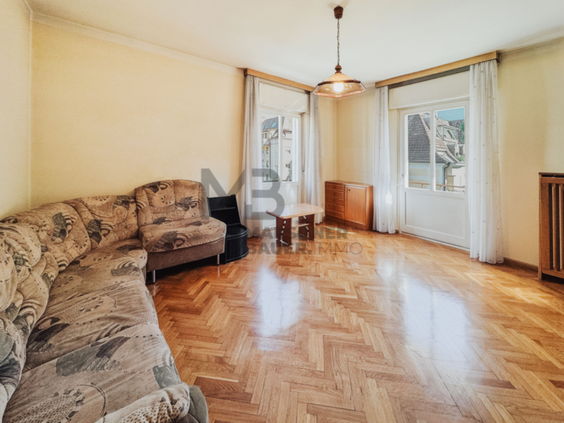 Diese 3-Zimmerwohnung befindet sich im 2. Stock eines im Jahre 1957 erbauten Mehrfamilienhauses mit Geschäften im Erdgeschoss.