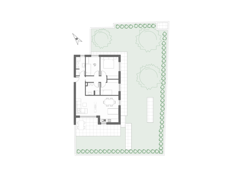 Diese großzügige Erdgeschosswohnung befindet sich in einem modernen Neubau in Meran und überzeugt durch viel Platz im Innen- wie im Außenbereich. Sie bietet ein durchdachtes Raumkonzept mit heller Wohnküche, drei Schlafzimmern und zwei Bädern – eines davon mit Fenster und Dusche, das andere als praktisches Gäste-WC. Der offen gestaltete Wohnbereich öffnet sich direkt auf die weitläufige Terrasse mit angrenzendem Privatgarten und schafft ein außergewöhnliches Wohngefühl mit viel Freiraum für Entspannung. Große Fensterfronten sorgen für lichtdurchflutete Räume, während die ebenerdige Lage einen komfortablen Zugang zum Garten ermöglicht. Die Wohnung liegt in ruhiger, zentrumsnaher und krankenhausnaher Lage mit guter Anbindung an öffentliche Verkehrsmittel und Einkaufsmöglichkeiten. Der Neubau wurde nach dem Standard eines Klimahauses A Nature errichtet.