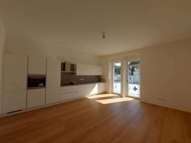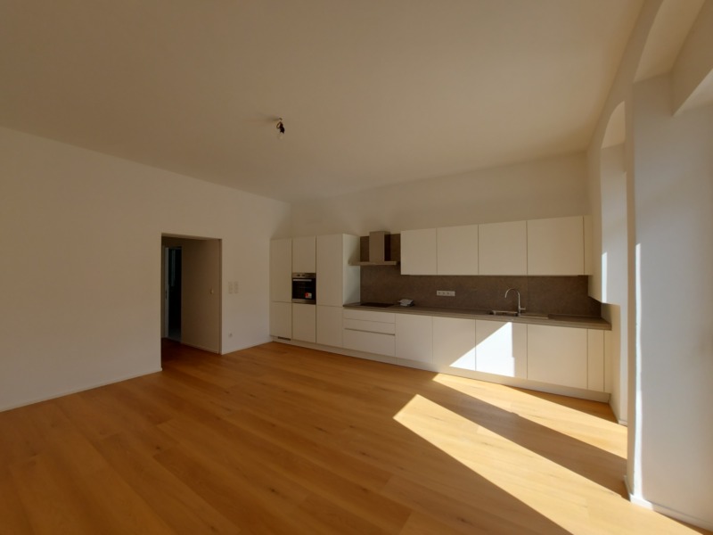 • einem großzügigen Wohnzimmer mit Einbauküche,