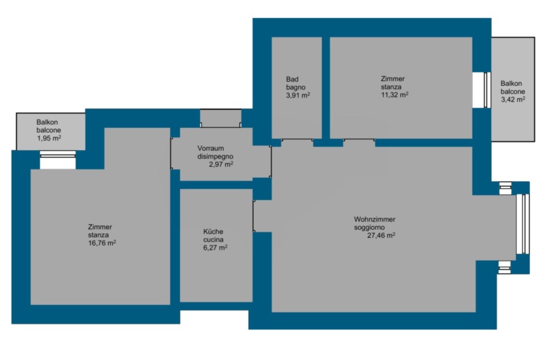 Die Immobilie liegt im 1. Stock eines gepflegten Gebäudes und überzeugt durch ihre angenehme Helligkeit, großzügige Raumaufteilung und zwei Balkone, die zusätzlichen Freiraum im Alltag bieten. Mit einer Nettowohnfläche von ca. 73 m² präsentiert sie sich derzeit als große 2-Zimmer-Wohnung, die sich ideal für Singles oder Paare eignet. Durch wenige Anpassungsarbeiten kann die Immobilie jedoch – wie in der geplanten Variante ersichtlich – unkompliziert in eine 3-Zimmer-Wohnung umgewandelt werden, wodurch sie noch vielseitiger nutzbar wird.
