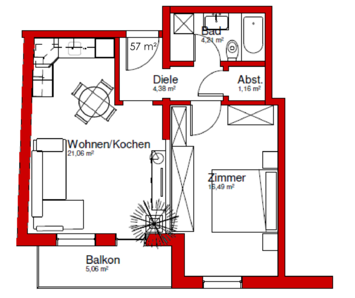 - Bad: ausgestattet mit Badewanne und Waschmaschine