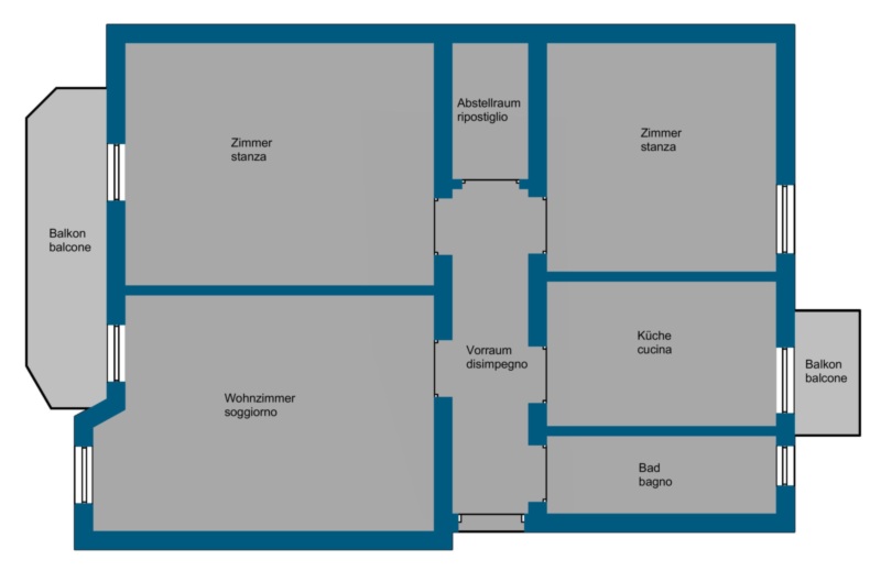 Die Raumaufteilung umfasst ein Wohnzimmer, eine Küche und zwei Schlafzimmer und bietet daher eine klassische, gut nutzbare Raumaufteilung. Dank des vorteilhaften Grundrisses besteht zudem die Möglichkeit, die Wohnung in eine 4-Zimmer-Wohnung umzuwandeln und dadurch zusätzlichen Wohnraum zu schaffen. Zwei Balkone sorgen für angenehme Lichtverhältnisse und erweitern den Wohnraum nach außen. Beheizt wird die Immobilie über eine autonome Gasheizung, wodurch eine individuelle Regulierung der Heizkosten möglich ist. Ein Keller sowie ein Dachboden sind im Angebot inbegriffen und bieten zusätzlichen Stauraum.