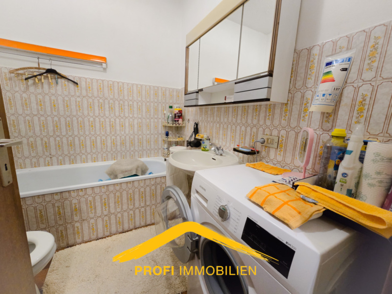 Doch sobald du die Tür im 1. Stock öffnest, machst du eine Zeitreise. Willkommen im Jahr 1979! Ja, die Badezimmer haben die Ära der Schlaghosen überlebt und die Teppichböden erzählen Geschichten von Jahrzehnten. Aber lass dich nicht täuschen: Unter diesem „Retro-Schleier“ verbirgt sich ein Grundriss, der heute kaum noch gebaut wird. 90 m² reine Netto-Wohnfläche! Vier echte, geräumige Zimmer, die nicht durch winzige Nischen begrenzt sind.