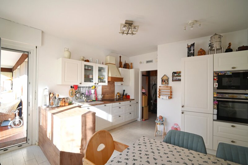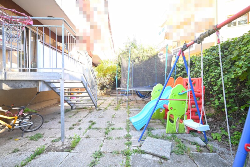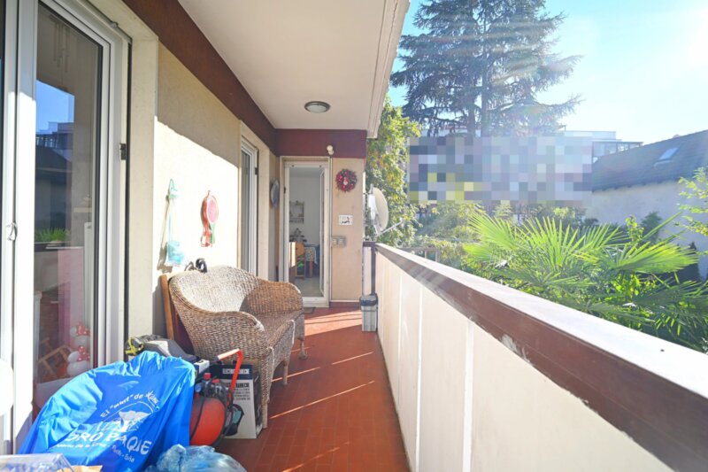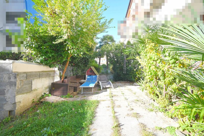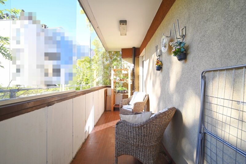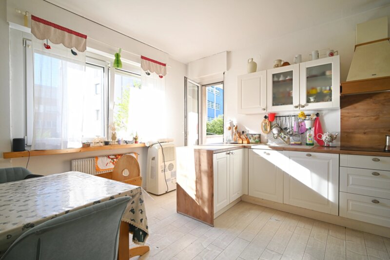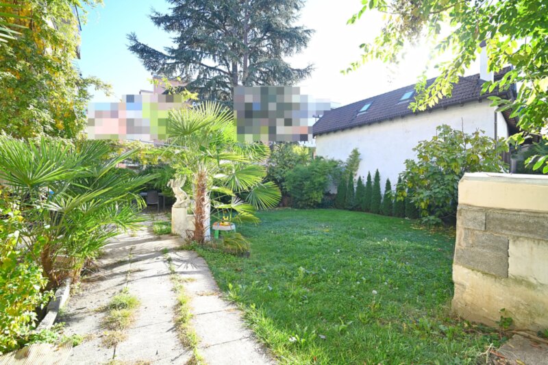 Die Wohnung wurde in den 1990er Jahren vollständig saniert und bietet großzügige Räume, die sich angenehm und funktional verteilen. Von einen der drei Eingangsbereiche gelangt man in das helle Wohnzimmer, das durch mehrere Türen und den Zugang zu einem der drei Balkone ein luftiges Raumgefühl vermittelt. Durch die drei autonomen Eingänge wäre die Wohnung auch in drei Einheiten teilbar. Die angrenzende Küche ist gut proportioniert und eignet sich sowohl für den Alltag als auch für gesellige Abende. Vier Schlafzimmer bieten vielseitige Nutzungsmöglichkeiten, etwa als Schlafräume, Homeoffice oder Hobbybereich. Zwei Badezimmer, ein zusätzliches WC sowie insgesamt drei Balkone sorgen für hohen Wohnkomfort. Besonders hervorzuheben ist der 388,2 m² große Garten, der viel Platz für Entspannung, Spielbereiche oder individuelle Gestaltungsideen bietet.
