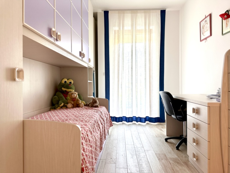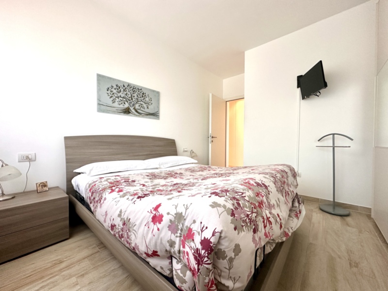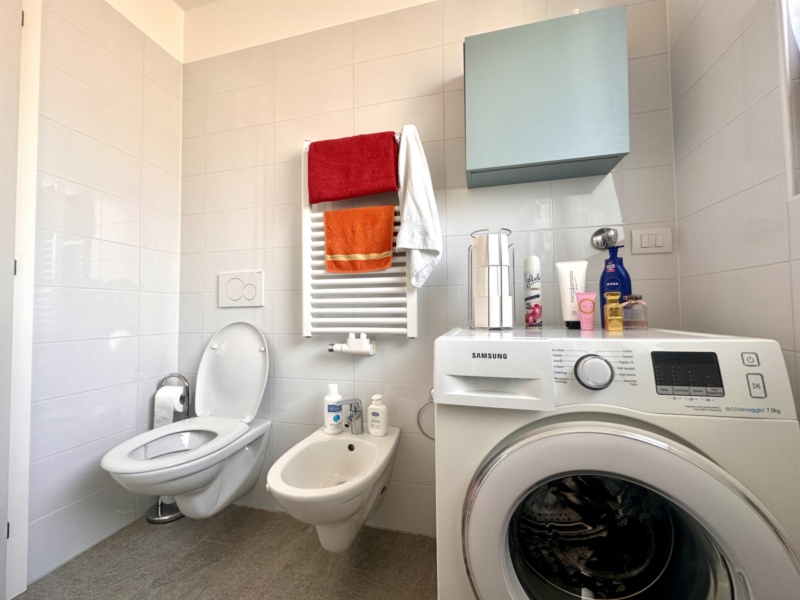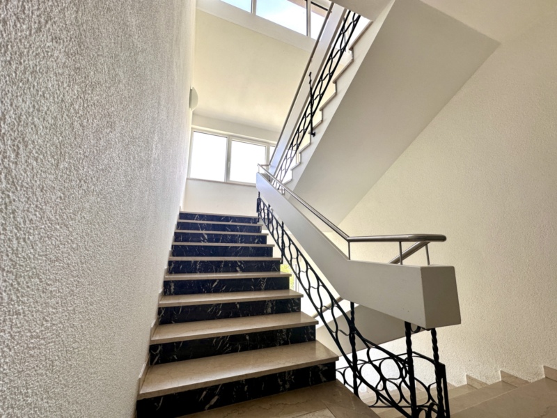 Der Schlafbereich ist durchdacht und funktional gestaltet, mit einem geräumigen Einbauschrank entlang des Flurs und zwei Schlafzimmern. Das Einzelzimmer bietet direkten Zugang zur wunderschönen Terrasse, während das Hauptschlafzimmer mit knapp 13 Qm Nettowohnfläche durch ein großes Fenster mit viel Tageslicht überzeugt. Das Badezimmer ist mit Dusche ausgestattet, verfügt über einen Wschmachinenanschluss und ist dank Fenster hell und gut belüftet.