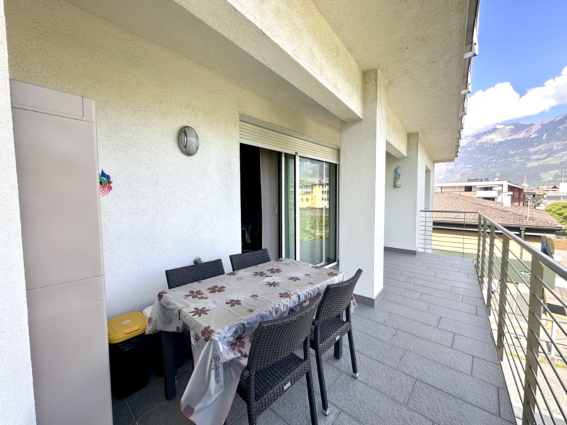Das Herzstück der Wohnung ist die großzügige, tiefe Terrasse - ein privilegierter Rückzugsort, an dem der Tag mit einem entspannten Früstück im Freien beginnen und mie einem Glas Rotwein ausklingen kann, während der Blick u4ber das satte Grün der Berge von Tirol, Schenna und Meran 2000 schweift.