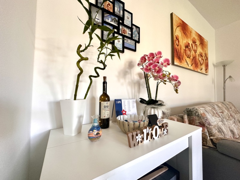 Auch die Details unterstreichen die Qualität dieser Immobilie: doppelt verglaste Fenster mit Holzrahmen innen und Aluminium außen sowie elektrische Rollläden. Die Wohnung wird komplett möbiliert verkauft und ist somit sofort bezugsfertig. Abgerundet wird dieses attraktive Angebot durch eine großzügige Garage mit elektrischem Tor - ein Komfort, der immer mehr an Wert gewinnt.