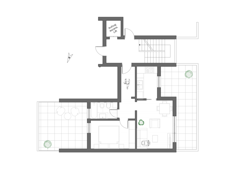 Sanierte 2-Zimmer-Wohnung mit großen Terrassen