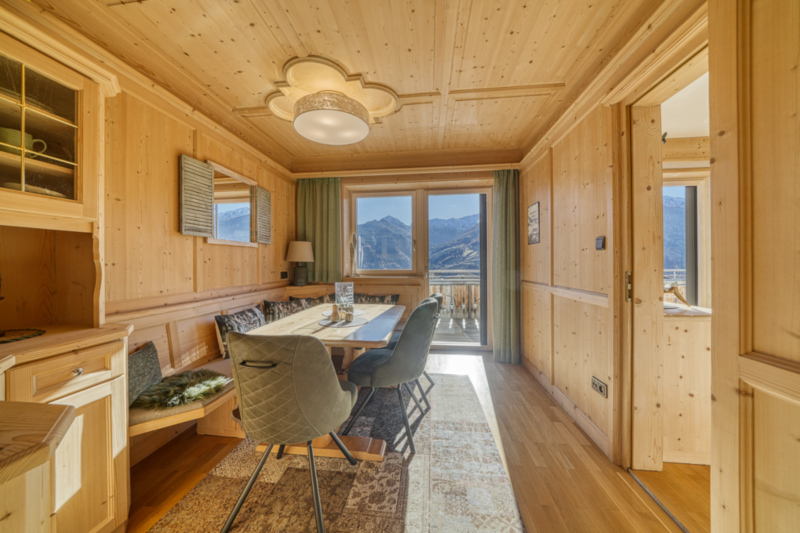 Das Treppenhaus, welches das ganze Haus verbindet und sich auf der nördlichen Seite befindet, grenzt an eine Eingangstür im Erdgeschoss, welche sowohl als Eingangstür, als auch als Zugang zum terrassenförmig anlegten Garten dient. Vom Flur gelangt man auch in die Diele, von wo aus man auf der rechten Seite in das Bad gelangt und geradeaus in das Wohnzimmer mit Holzofen. Auf der linken Seite befindet sich die Küche mit Fenster in Richtung Garten und auf der Südseite befindet sich ein Arbeitsraum, welcher getäfelt und mit großem Tisch versehen ist, sodaß dieser zum gemütlichen Essen mit der Familie oder Freunden bestens geeignet ist. Vom Arbeitszimmer und vom Wohnzimmer aus gelangt man auf den gemeinsamen, südlich ausgerichteten Balkon, welcher eine Traumaussicht über die Berge der hinteren Passeiertales bietet. Im 1. Stock gelangt man wieder über eine Diele auf der rechten Seite in das Badezimmer, geradeaus in zwei Schlafzimmer mit gemeinsamem, südseitlichem Balkon, auf der rechten Seite in ein Tages WC und im hinteren Bereich, befindet sich ein weiteres Zimmer, welches aktuell als weitere Küche eingerichtet ist. Im letzten Stockwerk befindet sich ein nicht ausgebauter und nicht bewohnbarer Dachboden, welcher aber mit Fenster ausgestattet ist.