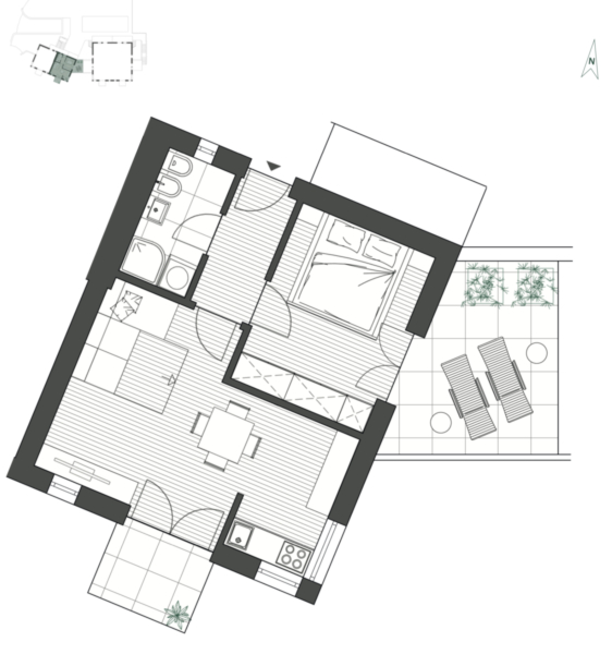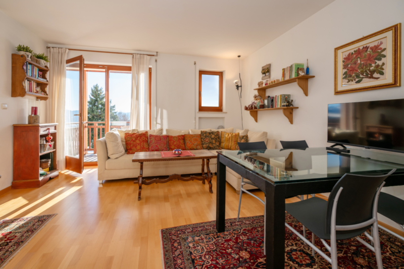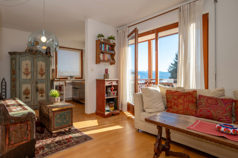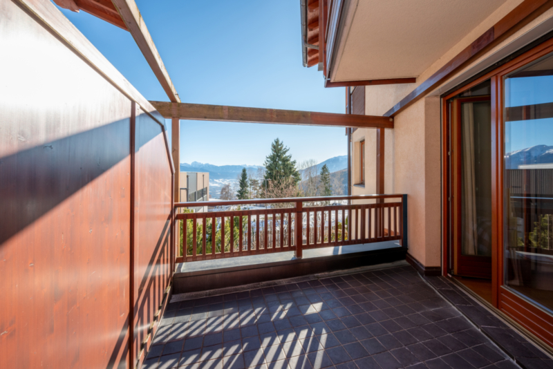 Diese gemütliche Zweizimmerwohnung befindet sich in sonniger Panoramalage. Die Wohnung verfügt über einen geräumigen Wohnbereich mit angrenzender Küche sowie einen Balkon mit herrlichem Bergblick, ein Schlafzimmer, ein Badezimmer und eine großzügige Südterrasse. Zur Wohnung gehören außerdem ein praktischer Kellerraum und eine Garage im Untergeschoss.