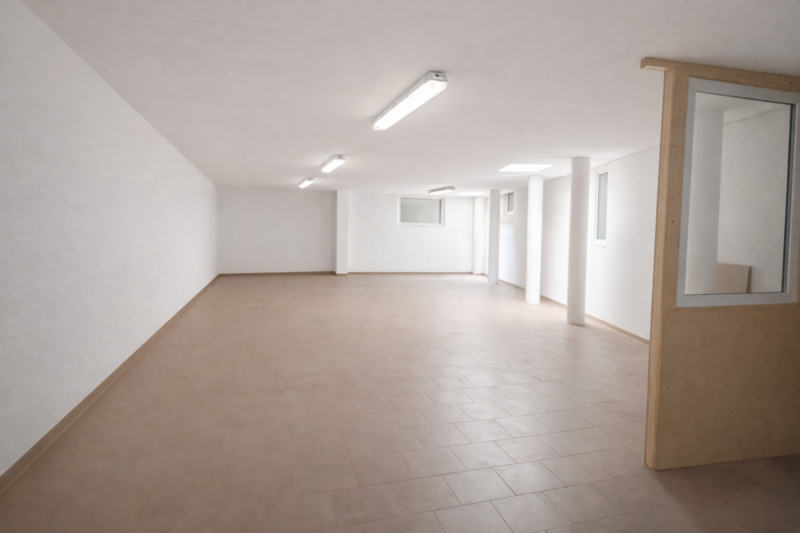 Die Bürofläche befindet sich im Erdgeschoss und hat eine Fläche von ca. 100m², die sich ideal als Büroräumlichkeiten oder für den Detailverkauf eignen. Zusätzlich stehen im hinteren Bereich der Immobilie Lagerräume mit einer Fläche von ca. 400m² zur Verfügung.