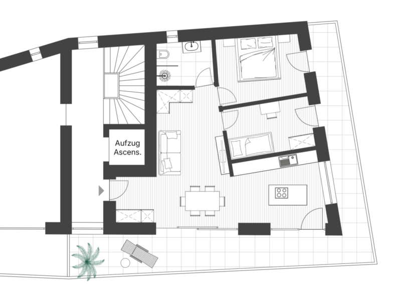 Diese helle Dachgeschosswohnung (Baujahr 2019) besticht durch eine großzügige Wohnküche, zwei gut geschnittene Schlafzimmer, ein Tageslichtbad und einen großen Balkon mit herrlicher Aussicht über das Eisacktal. Die Wohnung ist neuwertig, voll möbliert und bezugsfertig; die Ausstattung umfasst eine hochwertige Einbauküche und eine angenehme Fußbodenheizung. Kellerraum und Garage sind im Angebot enthalten. Die Lage bietet ruhiges Wohnen mit sehr guter Anbindung an den öffentlichen Nahverkehr sowie schnelle Erreichbarkeit von Einkaufsmöglichkeiten und Infrastruktur – ideal für Paare, kleine Familien oder als Ferienwohnung.