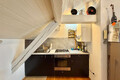 Die interne Einteilung umfasst einen Wohnraum mit integrierter Küche, ein Schlafzimmer sowie ein Badezimmer mit Fenster.