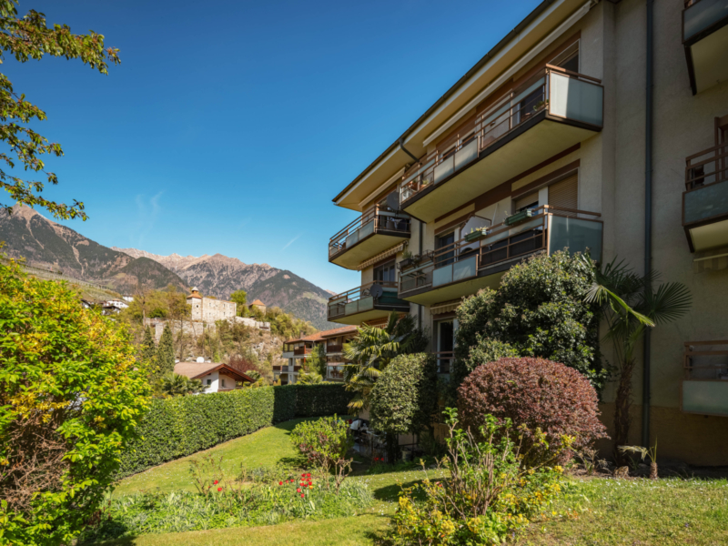 Diese großzügige 3-Zimmerwohnung in begehrter Lage von Meran-Obermais bietet ein ideales Zuhause für alle, die Ruhe und Komfort schätzen. Nur wenige Schritte vom Brunnenplatz und dem Stadtzentrum entfernt, liegt die Wohnung im 1. Obergeschoss eines gepflegten Wohnhauses ohne Aufzug, eingebettet in eine schöne gemeinschaftliche Parkanlage.