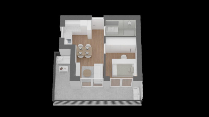 Die Immobilie verfügt über eine offene Wohnküche, die sich ideal für gemütliche Abende nach einem Tag in den Bergen eignet, sowie über ein Schlafzimmer und ein stilvoll ausgestattetes Badezimmer mit moderner Ausstattung. Abgerundet wird das Angebot durch einen sonnigen Eckbalkon, der sowohl vom Wohnbereich als auch vom Schlafzimmer aus zugänglich ist.