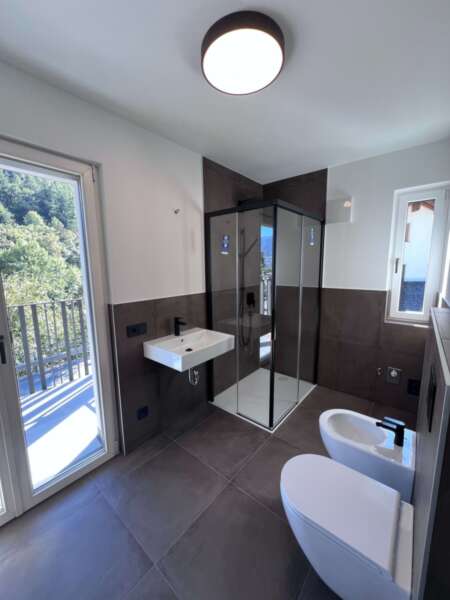 Das Schlafzimmer verfügt ebenfalls über einen Balkonzugang, während das geschmackvolle Badezimmer mit Fenster, Dusche und Bidet überzeugt.