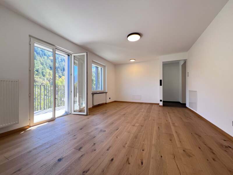 Diese lichtdurchflutete Zweizimmerwohnung befindet sich in einem gepflegten Mehrfamilienhaus oberhalb von Algund, in der Gemeinde Partschins.