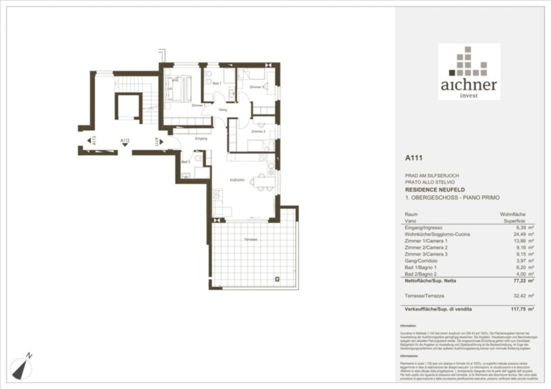Diese exklusive Neubau 4-Zimmer-Wohnung mit Terrasse befindet sich im 1. Obergeschoss in der Residence Neufeld. Die Immobilie befindet sich in verkehrsgünstiger Lage und das Dorfzentrum ist bequem fußläufig erreichbar. In unmittelbarer Umgebung befinden sich Wander- und Spazierwege sowie Fahrradwege und der Nationalpark Stilfserjoch.