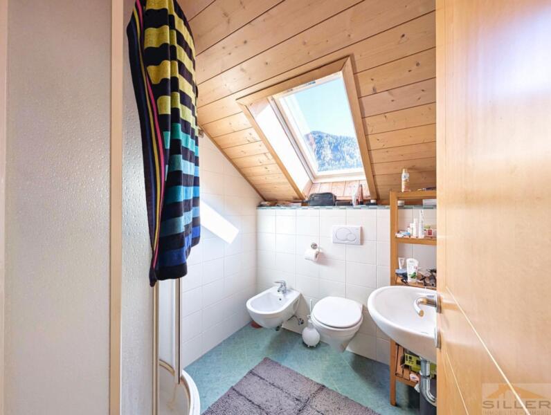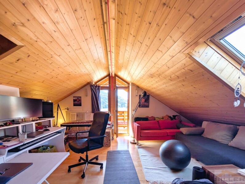 In ruhiger Wohnlage von Gasteig, nur eine Gehminute vom Wald und dem Wandergebiet entfernt, befindet sich diese gemütliche 2,5-Zimmer-Duplex-Wohnung zum Verkauf. Die Einheit befindet sich im 2. Stock eines Mehrfamilienhauses und bietet eine Verkaufsfläche von ca. 82 m².Die Wohnung ist unterteilt in Wohnzimmer mit Kochecke, Schlafzimmer sowie Badezimmer und Balkon; geht man die Treppen hoch ins Unterdach, so befindet sich dort ein großzügiger Dachraum, der als Zimmer genutzt werden kann, ein weiteres Bad-WC mit Fenster sowie schönem Balkon mit fantastischer Aussicht. Ein Kellerraum ist im Preis inkludiert, die geschlossene Garage kann gegen Aufpreis dazugekauft werden.Die Immobilie ist nicht konventioniert und aktuell gut vermietet – ideal als Kapitalanlage oder zur Eigennutzung in einem zweiten Moment (ab 2026).