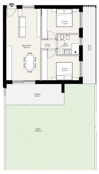Großzügige Außenflächen gehören zu jeder Einheit – sei es in Form eines privaten Gartens oder weitläufiger Terrassen, die zusätzlichen Wohnraum im Freien schaffen und zum Entspannen einladen. Die unmittelbare Lage am Waldrand sorgt für eine ruhige, naturnahe Atmosphäre und unterstreicht den besonderen Wohnkomfort dieses Projekts.
