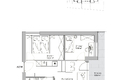Konventionierte Dreizimmerwohnung im Erdgeschoss mit Wohnküche, zwei Schlafzimmern, einem Bad, einer Terrasse und einem Keller.