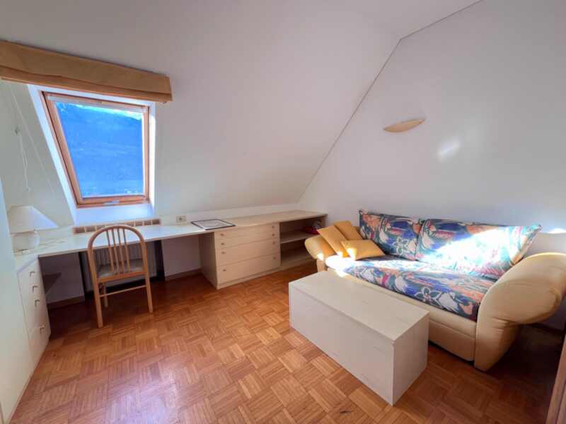 Im Zentrum von Schlanders befindet sich diese sonnige Dachgeschosswohnung im 3. Stock eines Wohnhauses aus dem Jahr 1991. Die Immobilie überzeugt durch eine klare Raumaufteilung mit einem großzügigen Wohnbereich und Zugang zur sonnigen Terrasse, von der sich ein schöner Ausblick über die Dächer von Schlanders eröffnet. Eine separate Küche, zwei Schlafzimmer sowie ein großes Badezimmer mit Fenster bieten ausreichend Platz und Funktionalität. Ergänzt wird das Angebot durch einen Autostellplatz in der Garage sowie einen angrenzenden Kellerraum. Dank der zentralen Lage sind Geschäfte, Schulen und weitere Einrichtungen bequem zu Fuß erreichbar.
